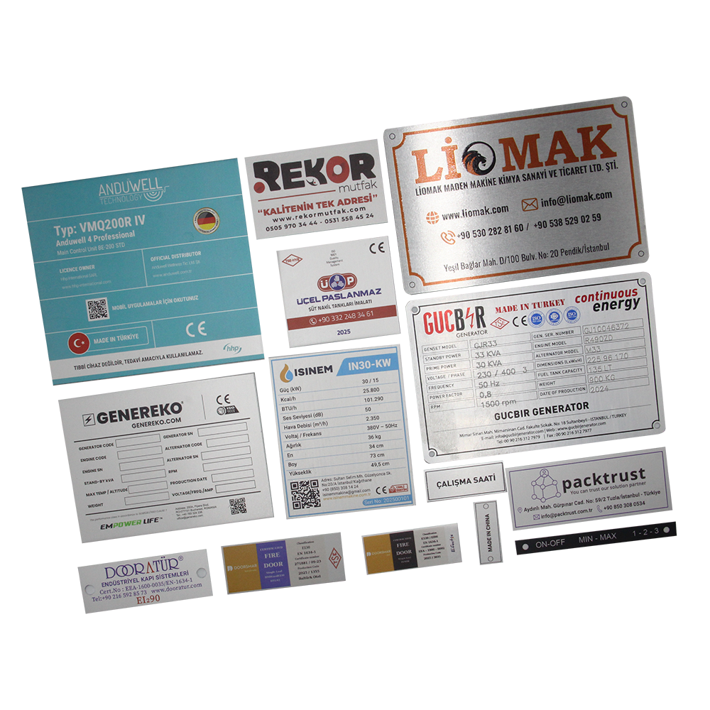 Dijibaskı metal etiketlerinde genellikle alüminyum, paslanmaz çelik ve pirinç malzemeler kullanılır. Bu malzemelerin dayanıklılığı ve mukavemeti, etiketlerin kullanım ömrünü belirler.