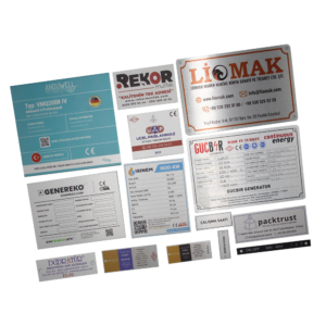 - Metal etiketler, seri numaralandırma ve barkodlama ile stok yönetimi için kullanılır.
